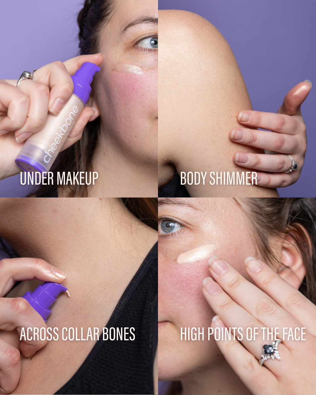 Adds soft luminosity to dull skin without chunky shimmer or glitter. Immediately dries down with no transfer. Perfect for face, shoulders, collarbones, anywhere you want to glow!